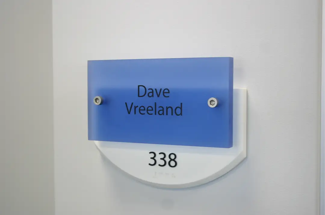 Braill-labelled, code-compliant, and branded door signs for rooms.